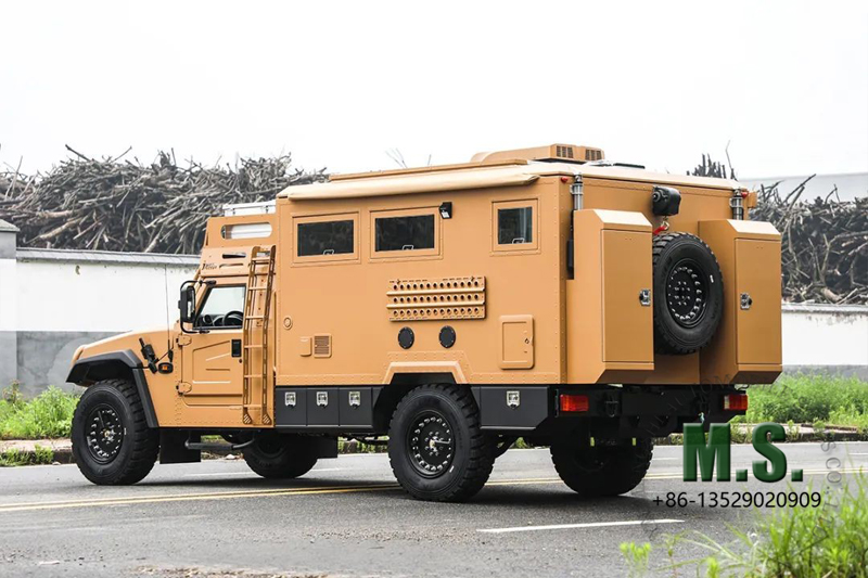 El ejército chino utiliza un clásico chasis todo terreno todoterreno de alta movilidad. Puede equiparse con cualquier característica de alta gama o de grado militar, como un sistema central de inflado de neumáticos o neumáticos a prueba de balas. Aplicamos el chasis para construir una casa rodante pero con la mejor capacidad y movilidad todoterreno.